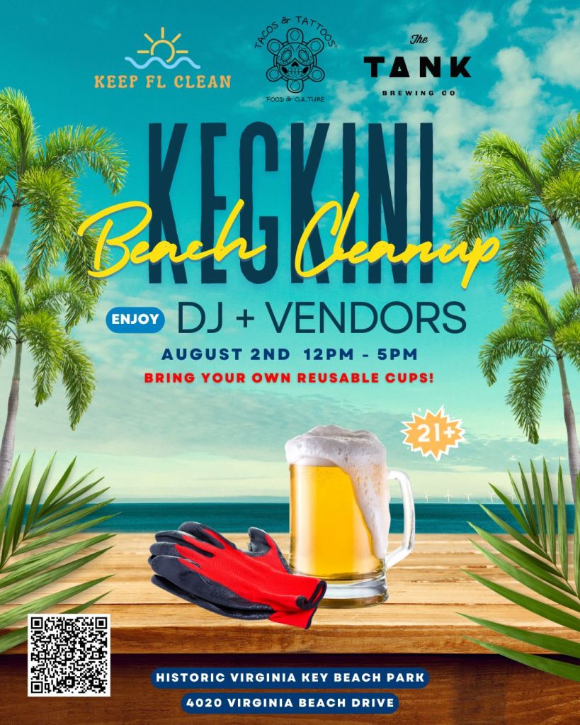 Join us Saturday August 2nd from 12PM-5PM in cleaning the Historic Virginia Key Beach Park! At this special clean up event, volunteers will help clean up the park, beach, shoreline and recreation areas while enjoying complimentary beer donated by The Tank Brewing, complimentary kombucha donated by Mother Kombucha, Tacos & Tattoos food truck, DJs, raffles, vendors market and much more! Sponsored by Beatbox Beverages.